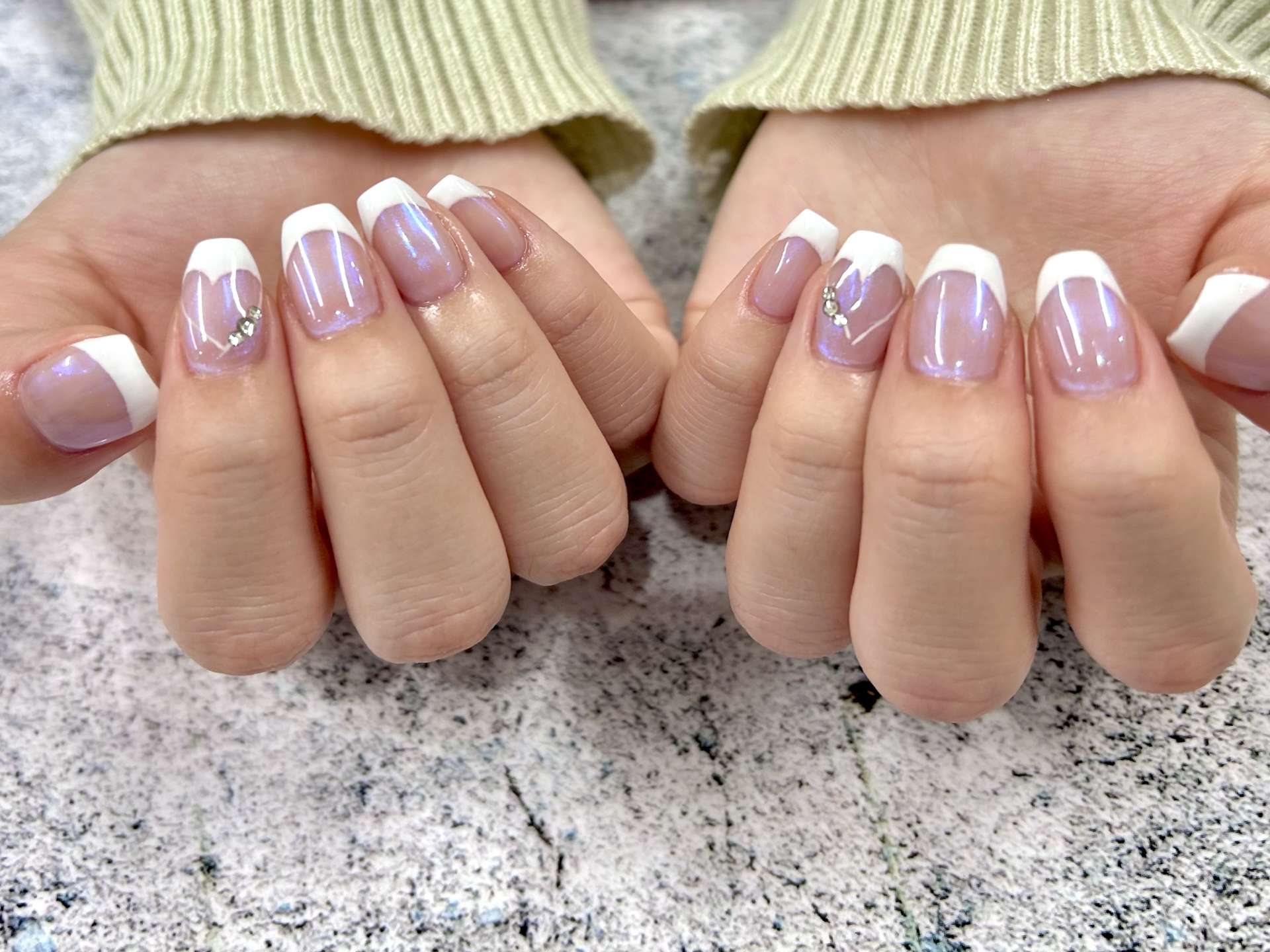 柏ネイル♡オーロラミラーのハートフレンチネイル