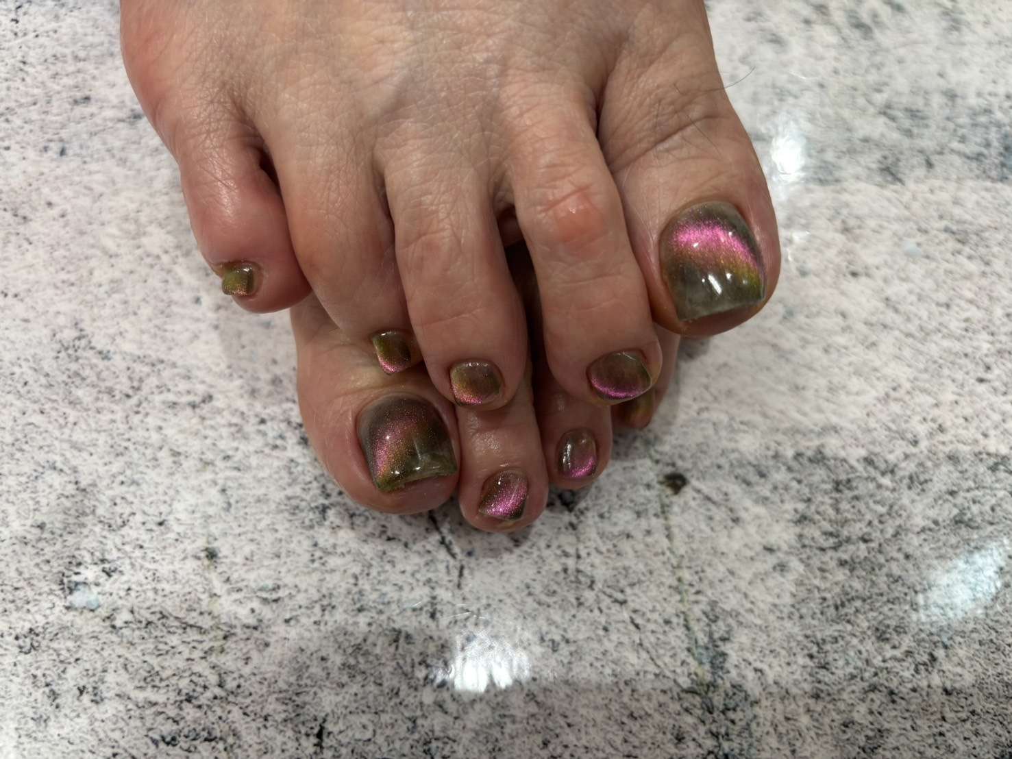 柏ネイル♡フットマグネットネイル 2025/12/06 柏ネイル♡フットマグネットネイル フットのマグネットネイル☺ ワンカラーでも可愛くなっちゃいます♪ ご新規様価格 ¥11,000(税込) 大人気☆マグネットカラー豊富です♪ 今やジェルネイルの定番!マグネットネイル☆彡 当店はマグネットカラーも多数ご用意しております♪ 一言にマグネットネイルと言っても ホロやフラッシュラメが一緒に入ったものや マグネットの粒子の細かいものなどなど… それぞれ違った雰囲気や質感に仕上がります♡ 是非、お好みのカラーでマグネットネイルお楽しみください(^^)/ 予約状況カレンダーは こちら ご予約はお電話・メールより受け付けております。 ご予約お待ちしております☆ 千葉県柏市柏6-8-3 tel:04-7161-2266 定休日 月曜日,火曜日(不定期),祝日 営業時間 10:30~20:00(最終受付18:30) 新着情報 スタッフブログ