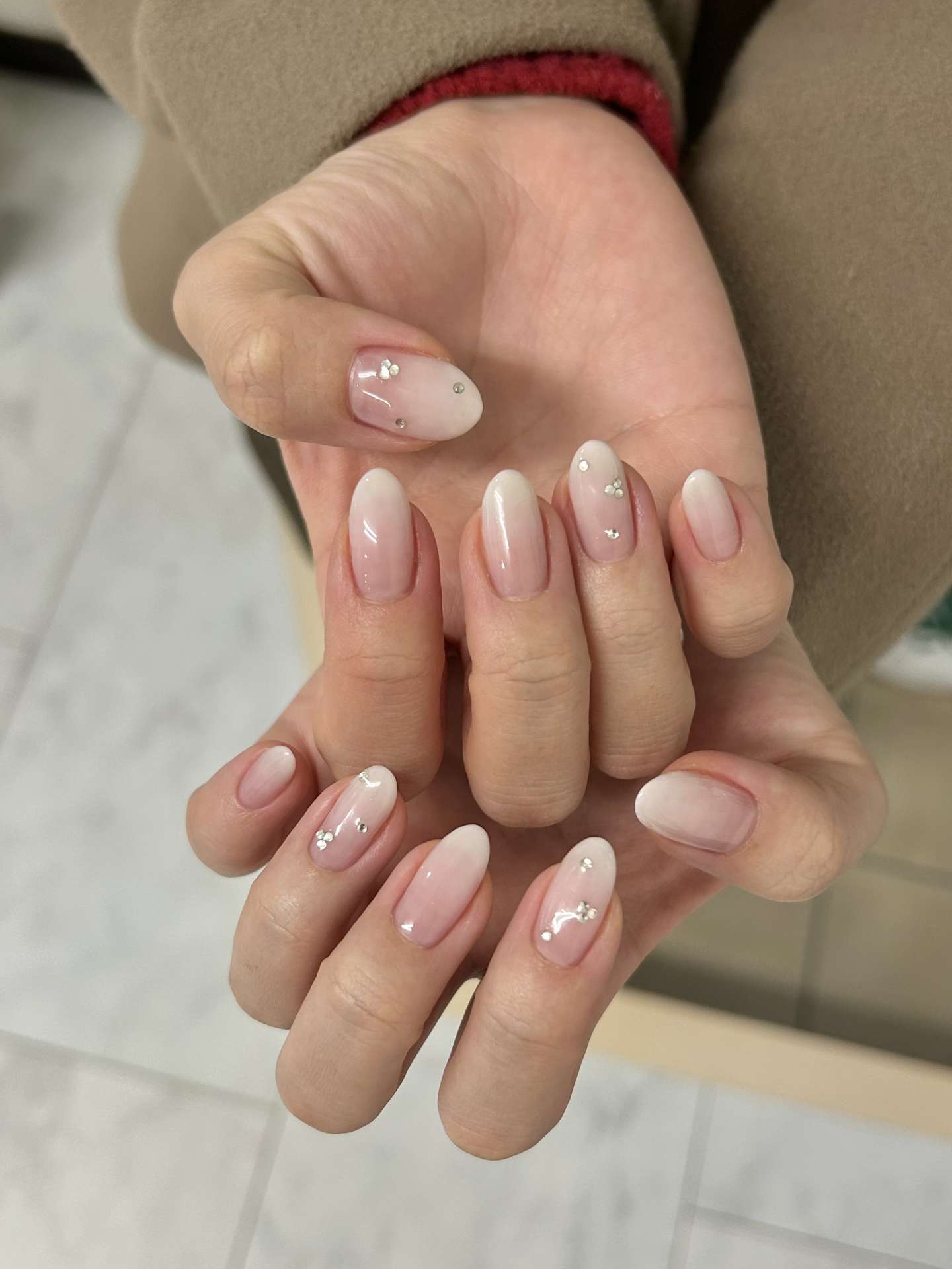 柏ネイル♡ピンク×白グラデーションネイル