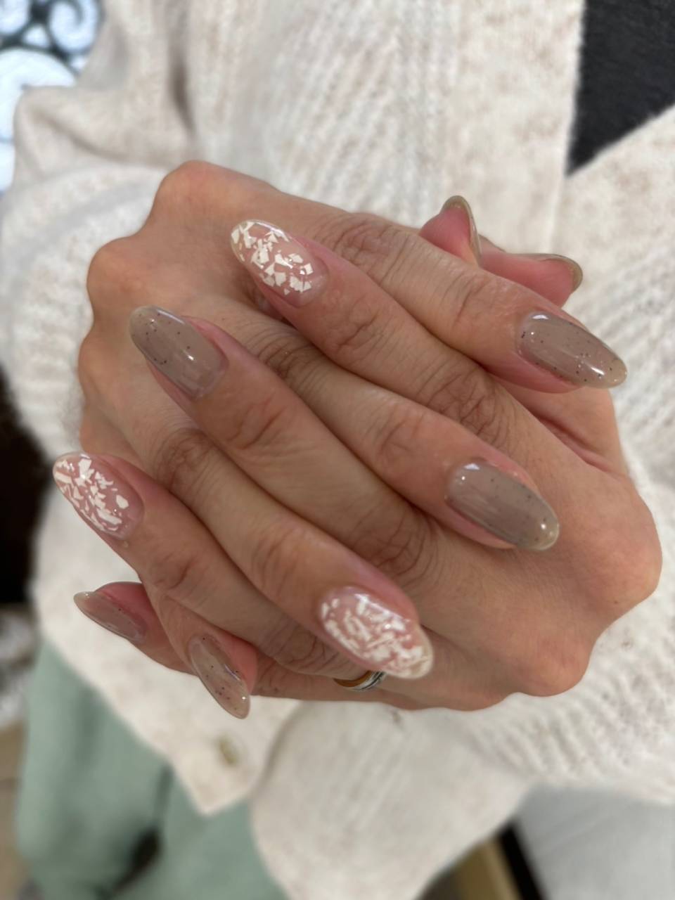 柏ネイル♡つぶつぶカラーとフレークネイル