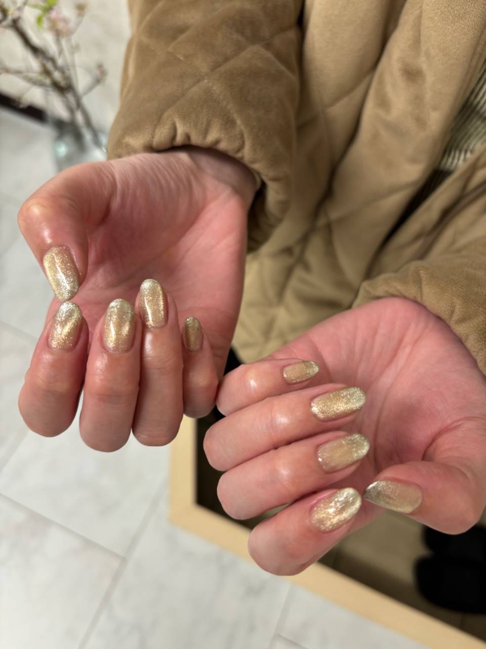 柏ネイル♡ゴールド&シルバーのスパークルネイル
